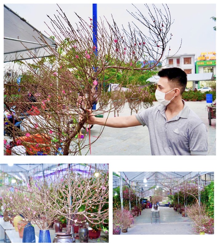 Tết không thể thiếu sắc đỏ, sắc hồng tươi thắm của hoa đào. Chợ hoa năm nay hội tụ hoa đào đa sắc, đa loại, như: Đào đá, đào phai, đào Nhật Tân; đào cành, đào thế… Trong đó, những cành đào dáng huyền vừa mềm mại, duyên dáng, vừa rực rỡ, hay những cành đào Nhật Tân cỡ nhỏ, cây đào bonsai để bàn thu hút sự chú ý, lựa chọn của nhiều người.