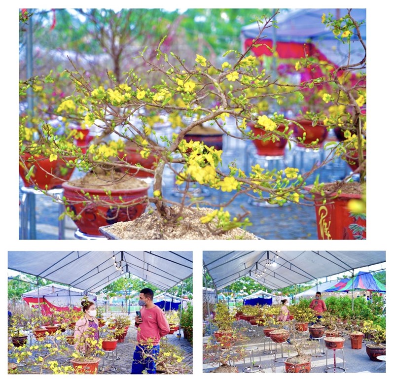 Cùng với sắc đào tươi thắm, hoa mai vàng rực rỡ đã mang không khí xuân tràn ngập chợ hoa.