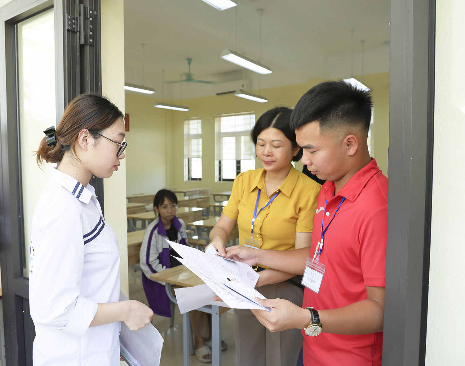 Lực lượng thanh tra kiểm tra các phòng thi.
