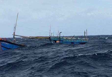 1 tàu cá bị sóng đánh chìm khi đang di chuyển tránh bão