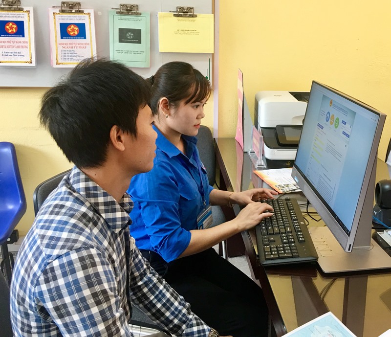 Đoàn viên thanh niên thành phố hỗ trợ người dân sử dụng dịch vụ công trực tuyến mức độ 3.