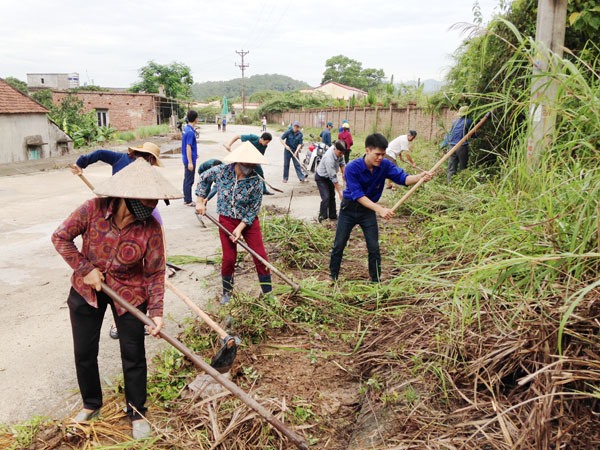 Cán bộ, nhân dân phường Thanh Sơn ra quân dọn vệ sinh trên tuyến đường Bãi Dài.