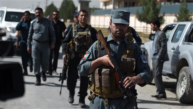 Lực lượng an ninh Afghanistan tuần tra sau vụ đánh bom nhằm vào một khách sạn có nhiều người nước ngoài, ở ngoại ô Thủ đô Kabul, Afghanistan, ngày 1-8-2016. (Ảnh: PressTV)