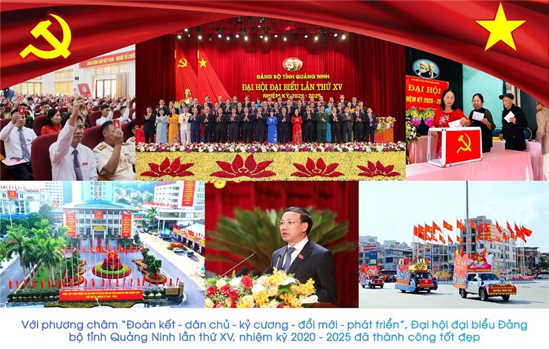 Với phương châm “Đoàn kết - dân chủ - kỷ cương - đổi mới - phát triển”, Đại hội đại biểu Đảng bộ tỉnh Quảng Ninh lần thứ XV, nhiệm kỳ 2020 - 2025 được tiến hành từ ngày 25/9 đến ngày 27/9/2020 tại Trung tâm Tổ chức hội nghị tỉnh và đã thành công tốt đẹp. Về dự đại hội có 350 đại biểu ưu tú, tiêu biểu cho trí tuệ, bản lĩnh chính trị, ý chí và sức mạnh đoàn kết, đến từ 20 đảng bộ trực thuộc, đại diện cho hơn 102.500 đảng viên trong toàn Đảng bộ tỉnh. Đại hội đã xác định mục tiêu tổng quát của giai đoạn 2020 - 2025 là “Tăng cường xây dựng, chỉnh đốn Đảng và hệ thống chính trị trong sạch, vững mạnh; phát huy đoàn kết, dân chủ, kỷ cương, đổi mới sáng tạo; huy động sức mạnh tổng hợp thúc đẩy phát triển kinh tế - xã hội nhanh, bền vững, nâng cao đời sống mọi mặt của Nhân dân; bảo đảm vững chắc quốc phòng - an ninh; xây dựng Quảng Ninh trở thành tỉnh dịch vụ, công nghiệp hiện đại, là một trong những trung tâm phát triển năng động, toàn diện của phía Bắc”, tăng trưởng GRDP bình quân của cả giai đoạn trên 10%, GRDP bình quân đầu người đến năm 2025 đạt trên 10.000 USD; trong tầm nhìn đến năm 2030, xây dựng, phát triển Quảng Ninh là tỉnh kiểu mẫu giàu đẹp, văn minh, hiện đại; là một trong những trung tâm phát triển năng động, toàn diện, trung tâm du lịch quốc tế, trung tâm kinh tế biển, cửa ngõ của Vùng kinh tế trọng điểm Bắc Bộ và cả nước, đô thị phát triển bền vững theo mô hình tăng trưởng xanh, thích ứng với biến đổi khí hậu, GRDP bình quân đầu người trên 15.000 USD; khu vực phòng thủ tỉnh vững chắc về quốc phòng - an ninh và phòng tuyến hợp tác, cạnh tranh kinh tế quốc tế.