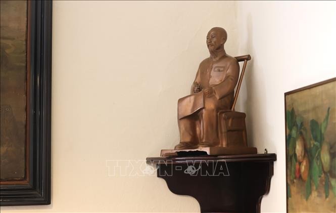 Bức tượng Chủ tịch Hồ Chí Minh được đặt trang trọng trong quán Antica Trattoria della Pesa từ năm 2012. Ảnh: Thanh Hải/PV TTXVN tại Italy