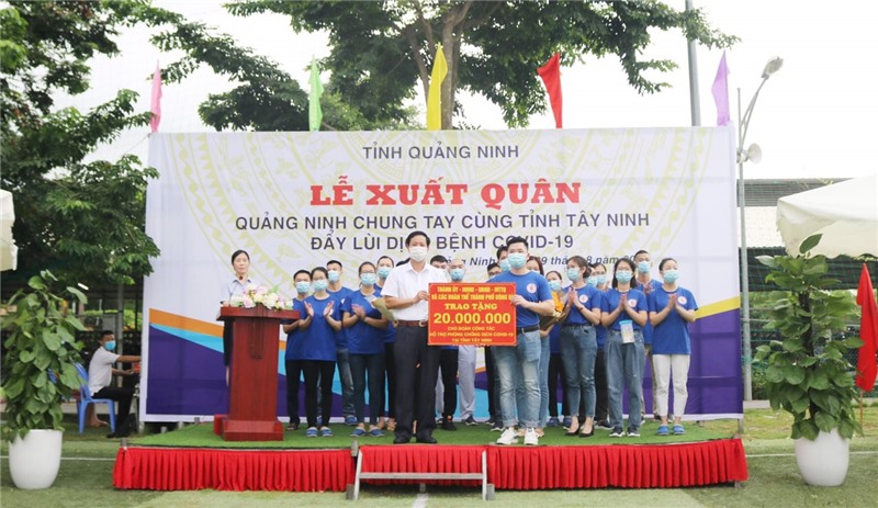 Phát biểu tại buổi lễ đồng chí Đồng chí Nguyễn Trọng Diện, Tỉnh uỷ viên, Giám đốc Sở Y tế tỉnh Quảng Ninh đã gửi những lời chúc tốt đẹp đến đoàn công tác. Chúc đoàn có thật nhiều sức khỏe để đem tâm huyết, trí tuệ, hỗ trợ hiệu quả cho công tác chống dịch, chăm sóc, điều trị các bệnh nhân mắc Coid-19 tại tỉnh Tây Ninh.