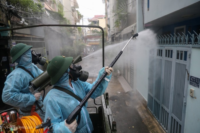 Hôm qua, 15 xe đặc chủng cùng 70 cán bộ chiến sĩ thuộc Phòng hóa học Quân khu 7 và Bộ tư lệnh TP HCM đã phun khử trùng tiêu độc 12 khu vực và tuyến đường quận Gò Vấp gồm: cầu vượt công viên Gia Định, đường Nguyễn Thái Sơn, toàn bộ phường 15, đường Nguyễn Văn Công...