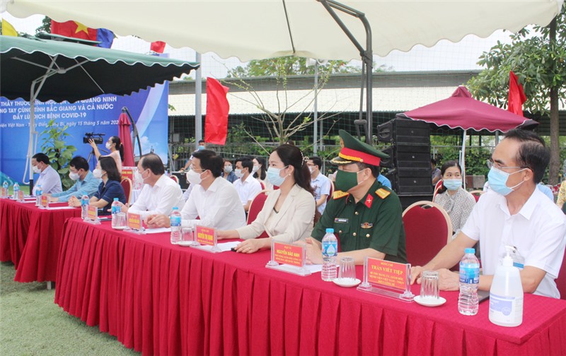Dự buổi lễ về phía lãnh đạo tỉnh Quảng Ninh có các đồng chí: Nguyễn Xuân Ký - Ủy viên Ban Chấp hành Trung ương Đảng, Bí thư Tỉnh ủy, Chủ tịch HĐND tỉnh, Trưởng Ban chỉ đạo phòng chống dịch bệnh Covid-19 tỉnh Quảng Ninh; Trịnh Thị Minh Thanh - Ủy viên Ban Thường vụ Tỉnh ủy, Phó Chủ tịch Thường trực HĐND tỉnh; Nguyễn Văn Hồi - Ủy viên Ban Thường vụ Tỉnh ủy, Chủ tịch UB MTTQ tỉnh, Phó Chủ tịch HĐND tỉnh, Trưởng Ban Dân vận Tỉnh ủy; Nguyễn Thị Hạnh – Tỉnh ủy viên, Phó Chủ tịch UBND tỉnh; lãnh đạo các Sở, Ban, ngành của tỉnh Quảng Ninh.
