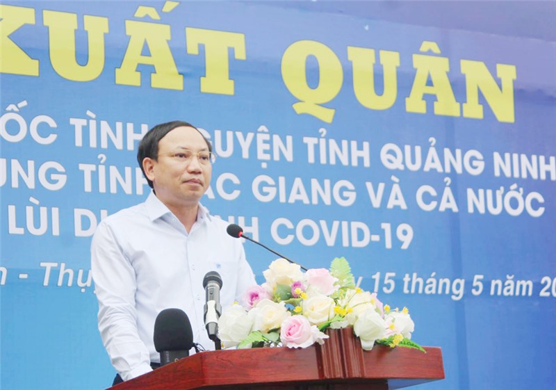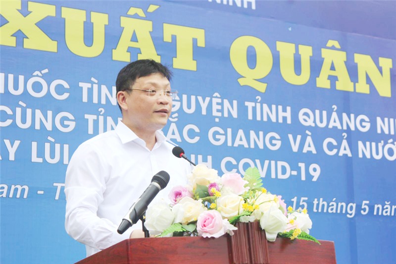 Phát biểu động viên trước giờ đoàn thầy thuốc tình nguyện lên đường làm nhiệm vụ, đồng chí Nguyễn Xuân Ký - Ủy viên Ban Chấp hành Trung ương Đảng, Bí thư Tỉnh ủy, Chủ tịch HĐND tỉnh, Trưởng Ban chỉ đạo phòng chống dịch bệnh Covid-19 tỉnh Quảng Ninh trân trọng ghi nhận, biểu dương và tin tưởng với tinh thần quyết tâm cao của ngành Y tế Quảng Ninh và trình độ chuyên môn của các y, bác sĩ Bệnh viện Việt Nam - Thụy Điển Uông Bí lên đường trong đợt này, Đoàn công tác sẽ hoàn thành tốt nhiệm vụ được giao, giúp đỡ nhân dân tỉnh Bắc Giang vượt qua khó khăn trước mắt. Đồng chí mong muốn các cán bộ, y, bác sĩ, nhân viên y tế trong đoàn giữ gìn sức khỏe, sớm trở về Quảng Ninh tiếp tục thực hiện nhiệm vụ chăm sóc sức khỏe cho nhân dân, giữ vững địa bàn Quảng Ninh an toàn, phòng, chống dịch Covid-19 hiệu quả.
