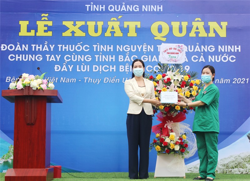 Thực hiện lời kêu gọi toàn dân, toàn quân chung tay phòng chống dịch Covid-19 của Chính phủ; để đáp ứng các biện pháp quyết liệt phòng, chống dịch trên địa bàn tỉnh Bắc Giang nói riêng và cả nước nói chung; căn cứ đề nghị của UBND tỉnh Bắc Giang và thực hiện văn bản số 2922/UBND-DL1 của UBND tỉnh Quảng Ninh” về việc hỗ trợ tỉnh Bắc Giang xét nghiệm Covid-19", sáng 15/5, tại Bệnh viện Việt Nam – Thụy Điển Uông Bí, tỉnh Quảng Ninh tổ chức Lễ xuất quân của đoàn thầy thuốc tình nguyện chung tay cùng tỉnh Bắc Giang và cả nước đẩy lùi dịch bệnh Covid-19.