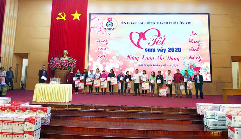Năm 2020, tại TP Uông Bí, LĐLĐ thành phố cùng các công đoàn cơ sở đã tổ chức chương trình Tết sum vầy tại 3 đơn vị, trao 383 suất quà với tổng giá trị 306,5 triệu đồng. Bên cạnh đó, các CĐCS trên địa bàn cũng triển khai nhiều hoạt động thiết thực, chăm lo đời sống, động viên tinh thần cho người lao động trong dịp Tết đến xuân về.