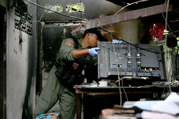 Nhân viên điều tra thẩm định hiện trường vụ tấn công. Ảnh: Bangkok Post