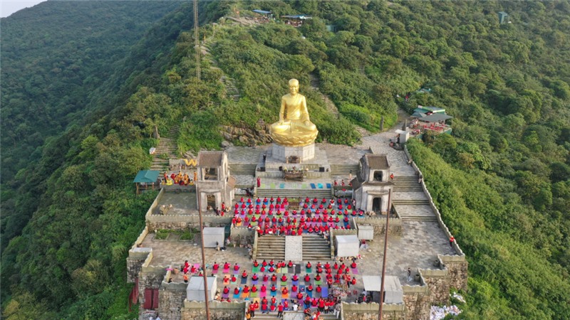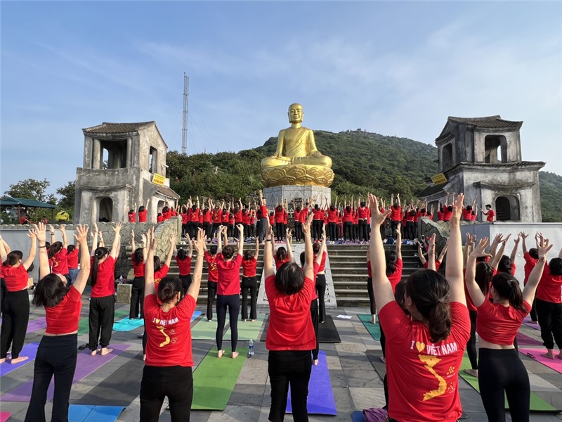 300 học viên đồng diễn Yoga tại khu vực Bảo tượng Phật Hoàng Yên Tử.