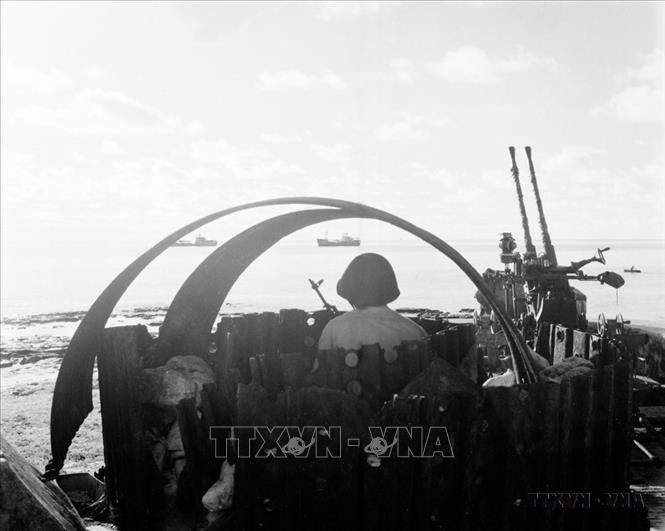 Trận chiến đấu bảo vệ chủ quyền Tổ quốc ở Gạc Ma thức tỉnh trái tim người Việt về nhiệm vụ thiêng liêng bảo vệ chủ quyền biển, đảo của Tổ quốc. Trong ảnh: Chiến sĩ đảo An Bang ngày đêm canh gác bảo vệ đảo (1984). Ảnh: Hồng Thụ/TTXVN