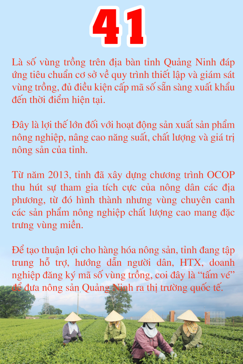 41 - là số vùng trồng trên địa bàn tỉnh đáp ứng tiêu chuẩn cơ sở về quy trình thiết lập và giám sát