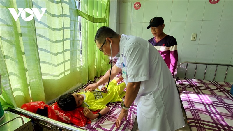 Bác sĩ Bệnh viện Sản Nhi tỉnh Hậu Giang thăm khám cho các em học sinh trong sáng nay