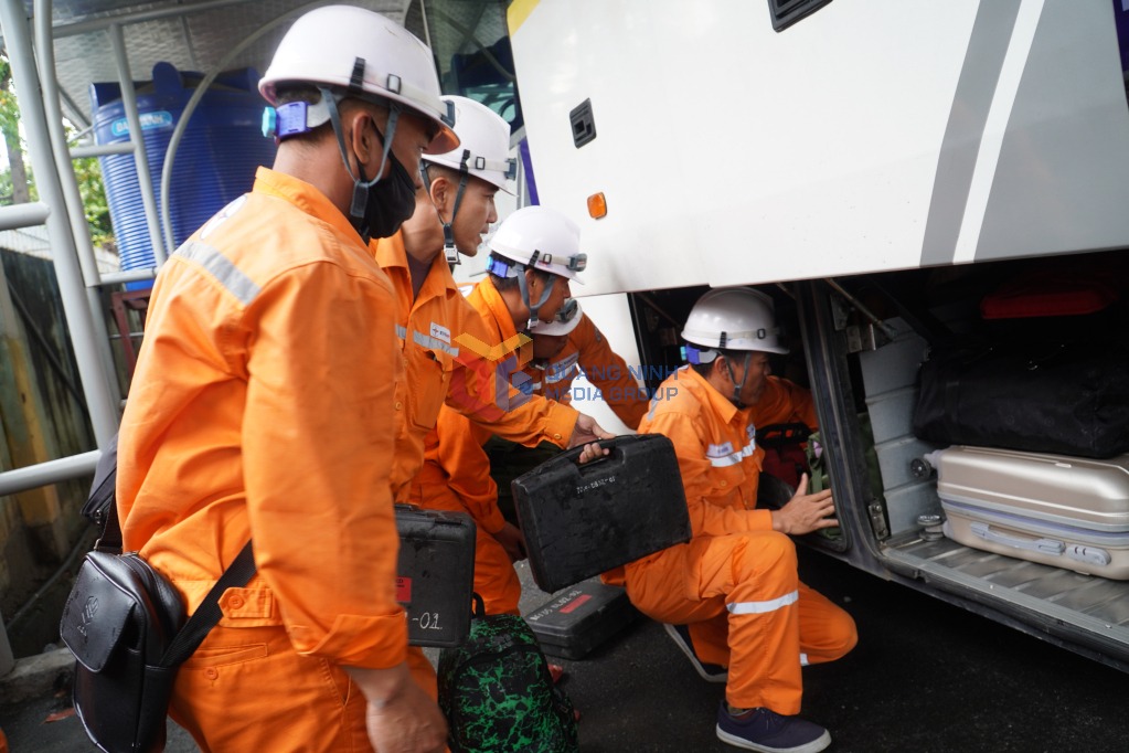 Chi viện nhân lực, vật lực hỗ trợ tỉnh Nghệ An, đúng 13h30’ ngày 29/9, Đội xung kích của Công ty Điện lực Quảng Ninh gồm 65 thành viên xuất phát di chuyển vào tỉnh Nghệ An.