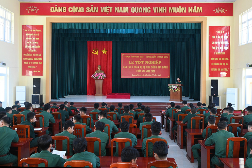 Sáng 27/10, tại Trung đoàn 244 (TP Uông Bí), Bộ CHQS tỉnh Quảng Ninh phối hợp với Trường Quân sự Quân khu 3 tổ chức Lễ tốt nghiệp đào tạo sĩ quan dự bị (SQDB) binh chủng hợp thành khóa XVI năm 2022. Đến dự và chỉ đạo có Đại tá Nguyễn Quang Hiến, Phó Bí thư Thường trực Đảng ủy, Chính ủy Bộ CHQS tỉnh; Đại tá Trần Văn Tú, Phó Hiệu trưởng Trường Quân sự Quân khu 3.