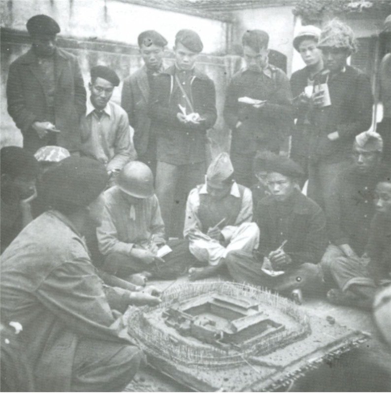 Các đơn vị tham gia chiến dịch nghiên cứu vị trí địch trên sa bàn trước khi bước vào Chiến dịch Tây Bắc. Ảnh tư liệu.