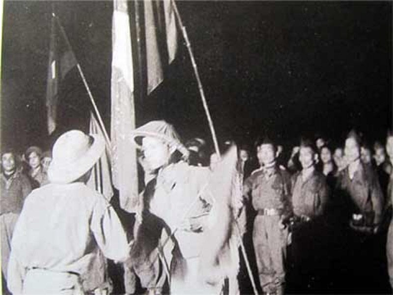 Lễ kết nghĩa bộ đội Việt Nam và bộ đội Pa-thét Lào trong Chiến dịch Thượng Lào năm 1953. Ảnh tư liệu