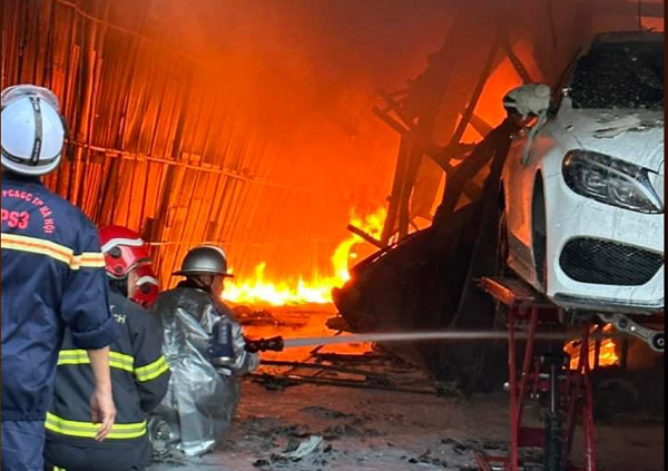 8 ô tô bị thiêu rụi bởi vụ cháy gara ô tô ở quận Nam Từ Liêm