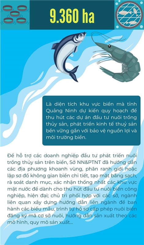 9.360 ha - là diện tích biển mà tỉnh dự kiến QH để thu hút các DAĐT nuôi trồng thủy sản