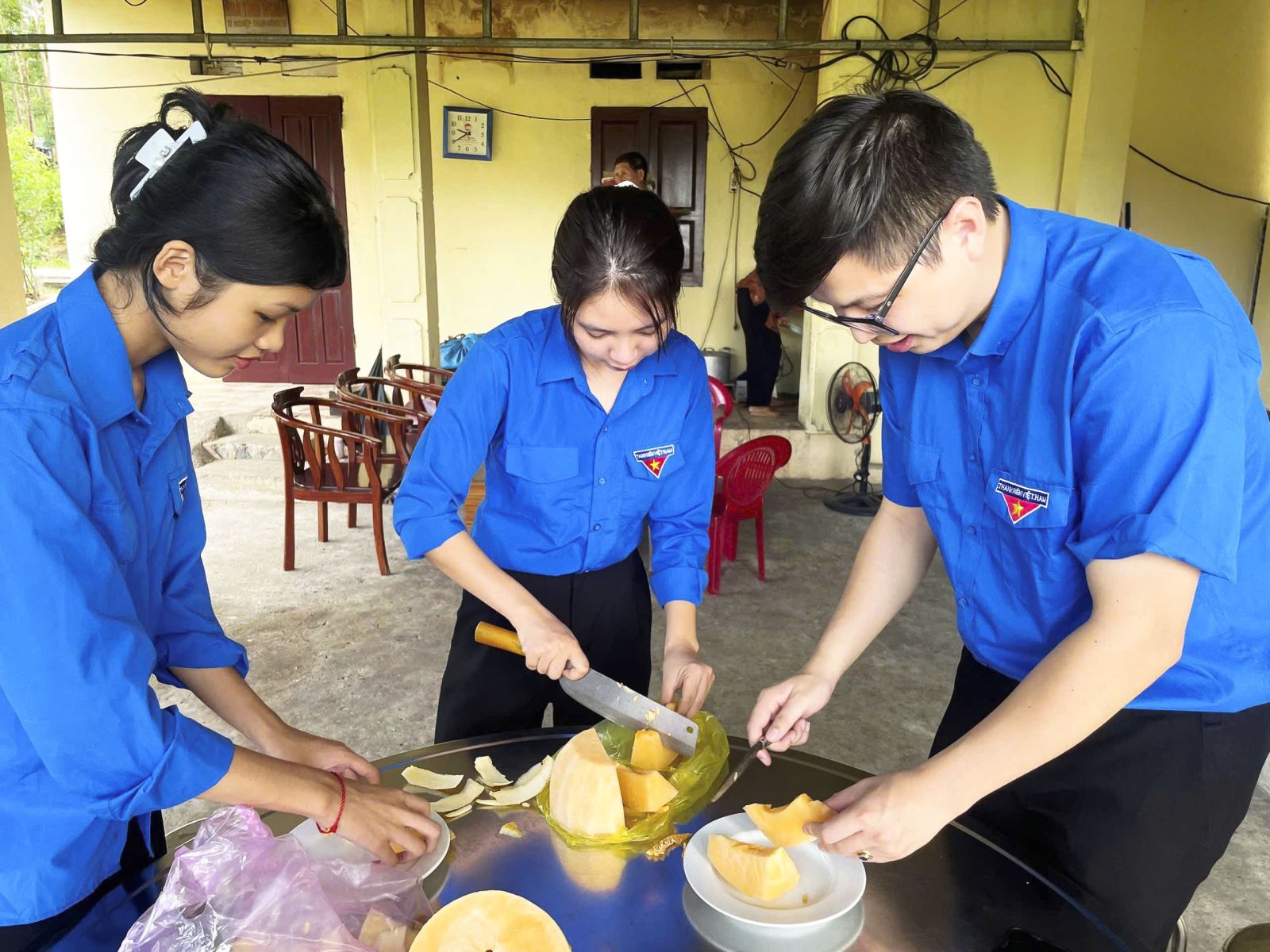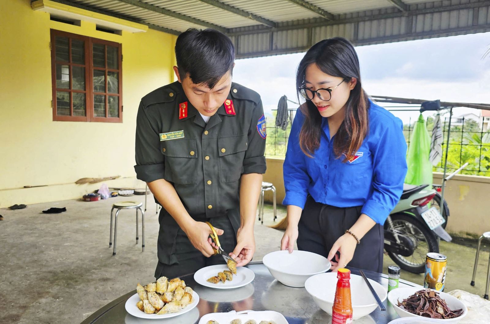 Đoàn viên phường Uông Bí và Trung đoàn Cảnh sát cơ động Đông Bắc cùng chung tay chuẩn bị bữa cơm sum vầy tại gia đình Mẹ Việt Nam Anh hùng Hoàng Thị Nghi.