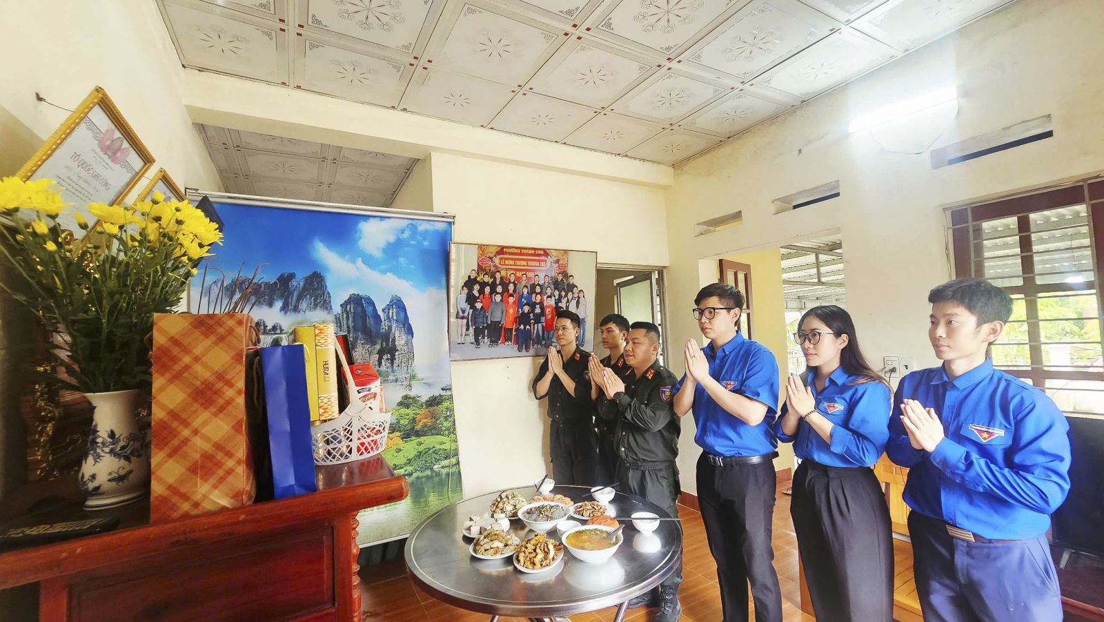 Trong không khí trang nghiêm, các đoàn viên kính cẩn dâng hương tưởng niệm các anh hùng liệt sĩ đã hy sinh vì Tổ quốc.