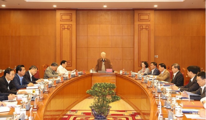 Tổng Bí thư Nguyễn Phú Trọng phát biểu chỉ đạo cuộc họp.