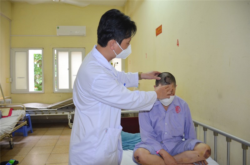 Bác sĩ kiểm tra sức khỏe bệnh nhân L.K.T bị chấn thương sọ não do TNGT có sử dụng rượu, bia.