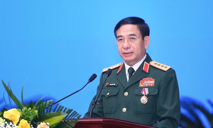 Đại tướng Phan Văn Giang, Bộ trưởng Quốc phòng phát biểu tại buổi lễ. Ảnh: Phú Sơn