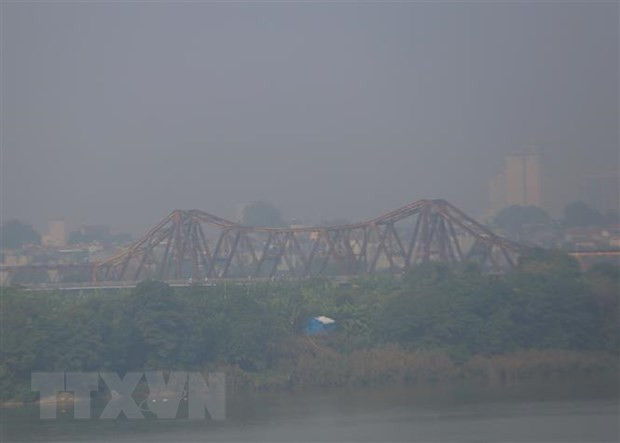 Nhiều khu vực tại Hà Nội chìm trong làn sương mù dày đặc. (Ảnh: Tuấn Đức/TTXVN)