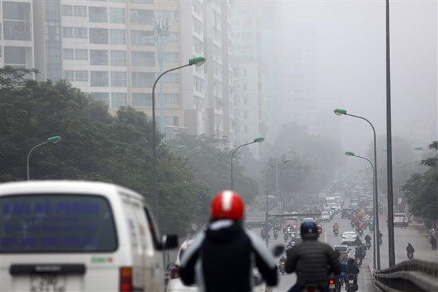 Nhiều tuyến phố của Hà Nội mờ mịt trong mưa phùn. (Ảnh: Huy Hùng/TTXVN)