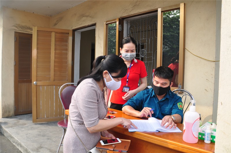 Bác sĩ Nguyễn Thị Dung (bên trái) giám sát dịch tễ tại cộng đồng.