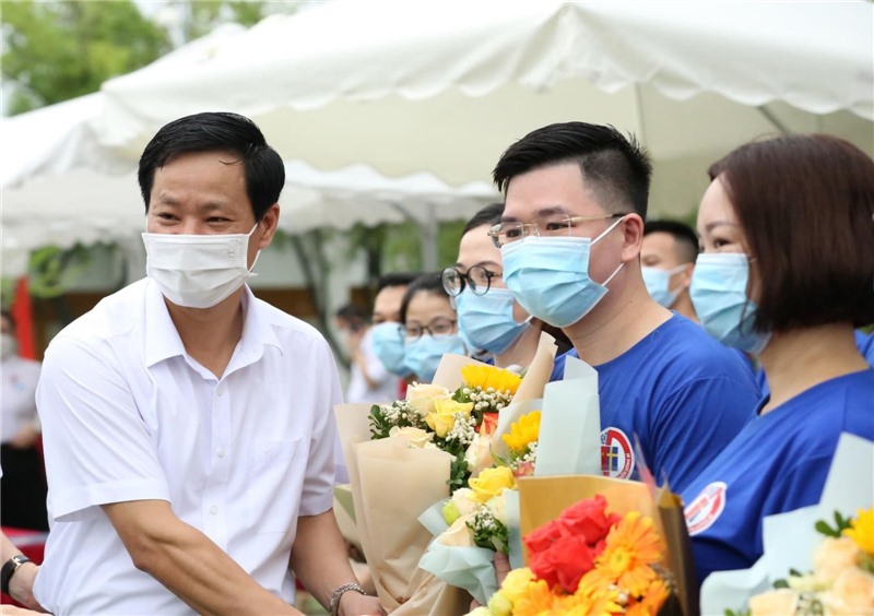 Đồng chí Phạm Tuấn Đạt, Phó Bí thư Thường trực Thành ủy, Chủ tịch UBND thành phố động viên đoàn y, bác sỹ Bệnh viện việt Nam - Thụy Điển Uông Bí lên đường làm nhiệm vụ chống dịch tại tỉnh Tây Ninh.