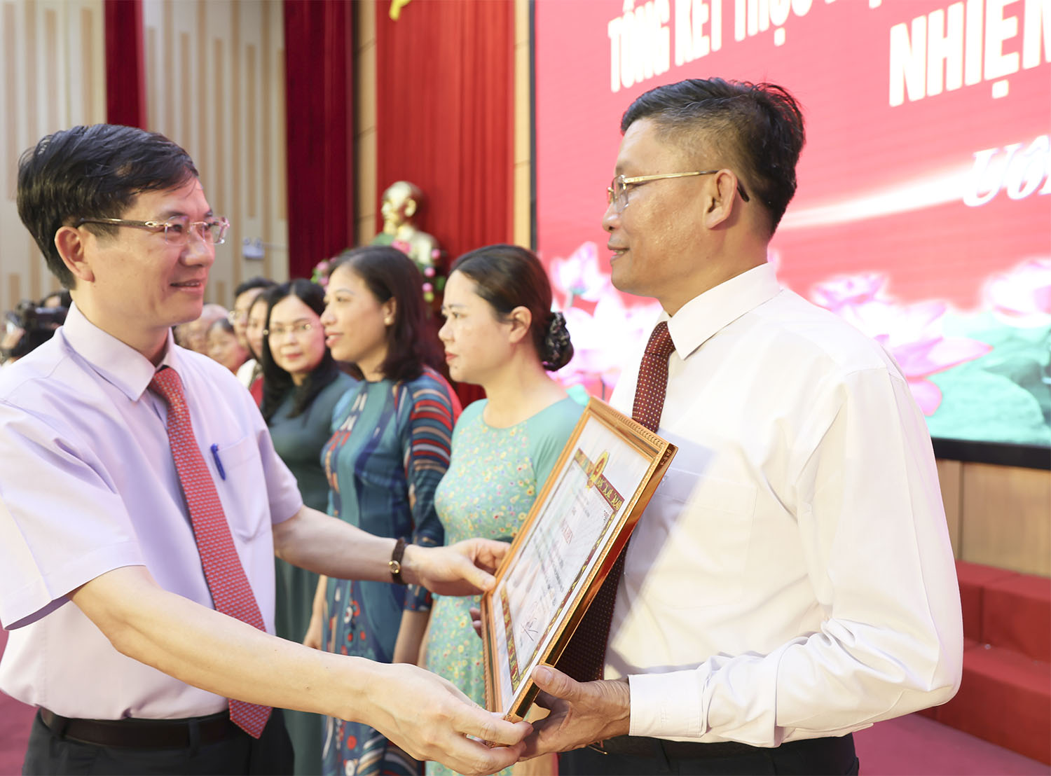 Đồng chí Vũ Quyết Tiến, Phó Bí thư Tỉnh ủy trao Bằng khen cho các tập thể có thành tích xuất sắc.