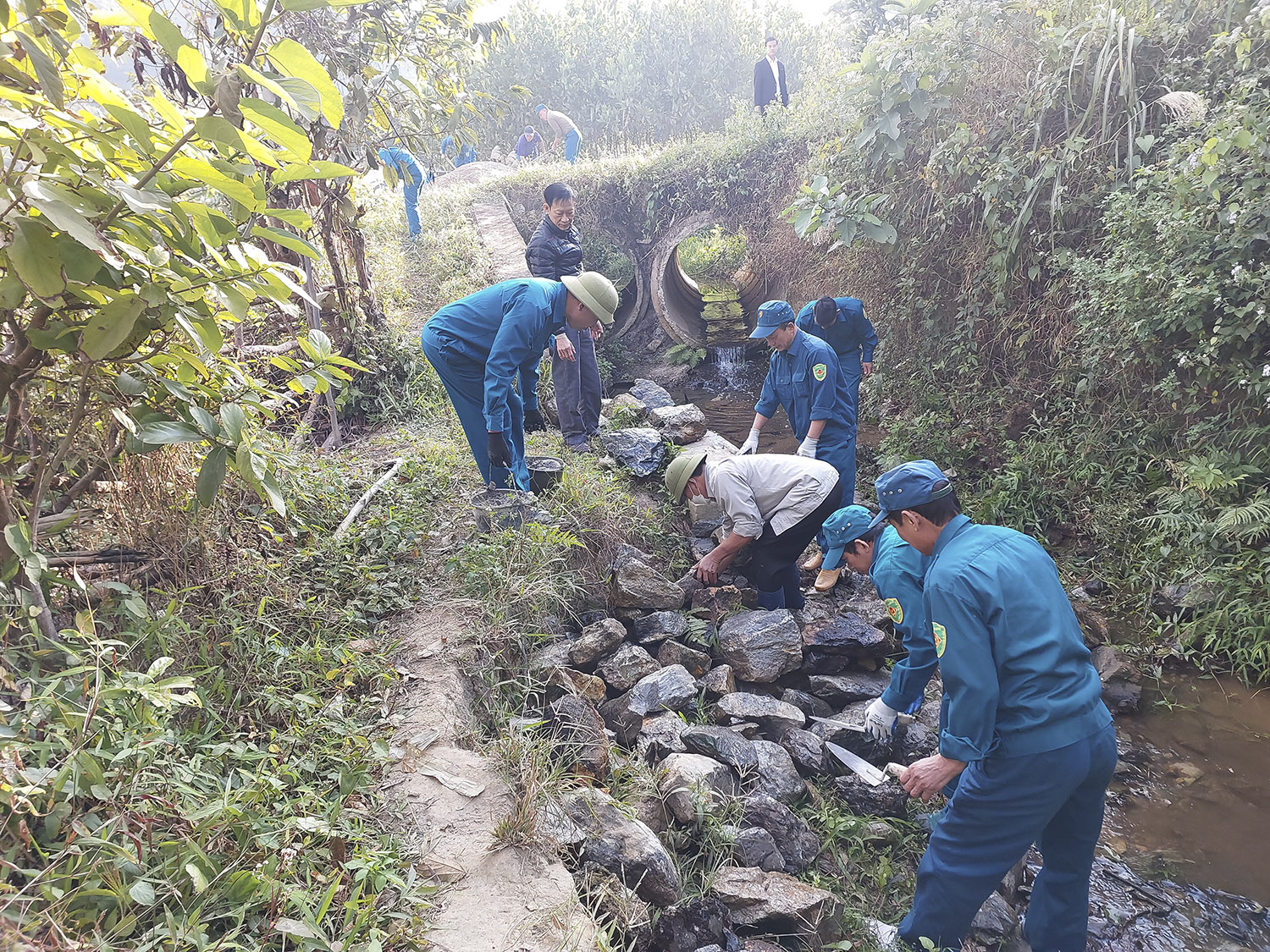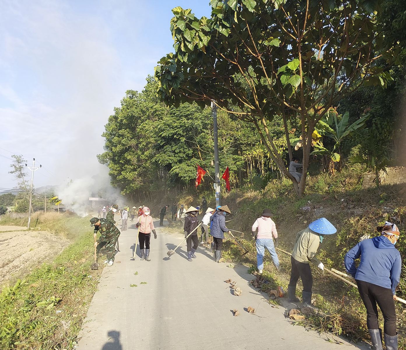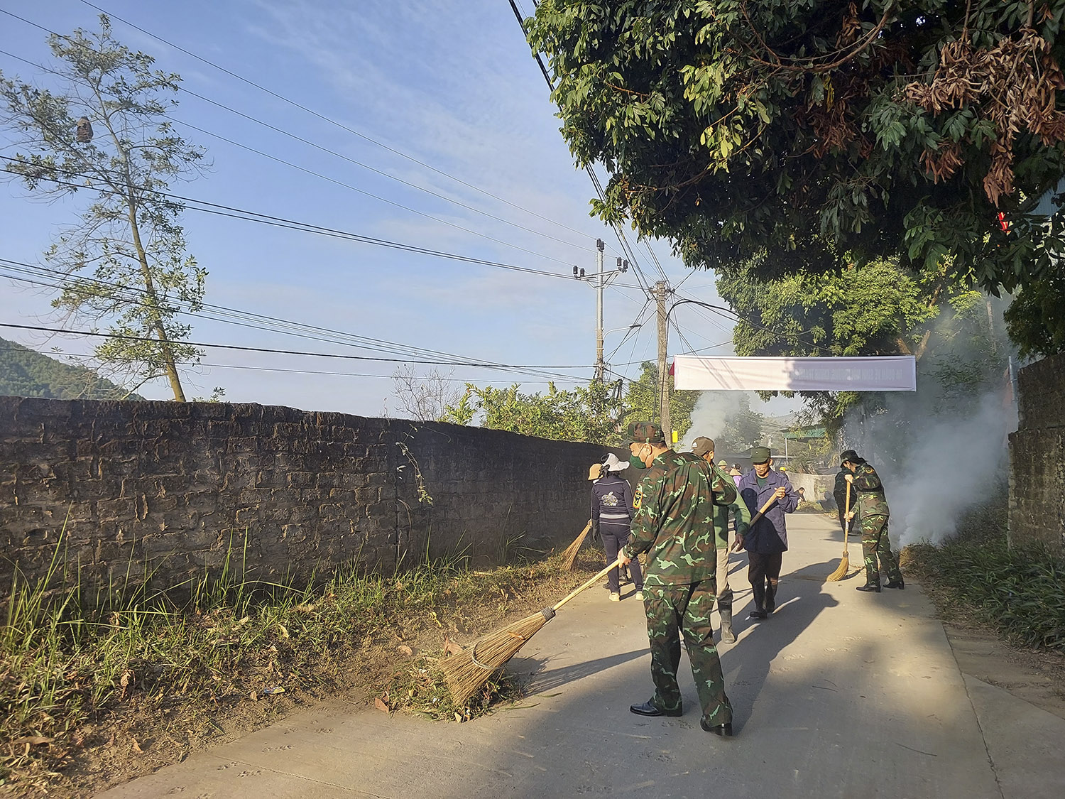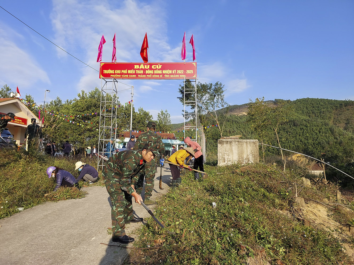 Tại khuôn viên Nhà văn hóa khu Miếu Thán - Đồng Bống và trên dọc tuyến đường khu, cán bộ, chiến sỹ Ban CHQS thành phố đã phối hợp cùng các cơ quan, đoàn thể xã hội và Nhân dân địa phương tiến hành lao động, cắt tỉa cây xanh, dọn vệ sinh rác thải, tạo cảnh quan môi trường.