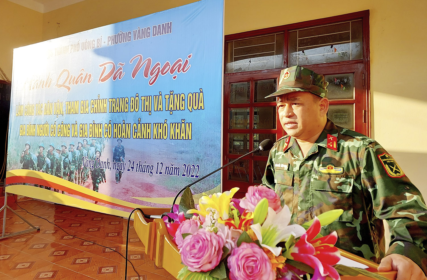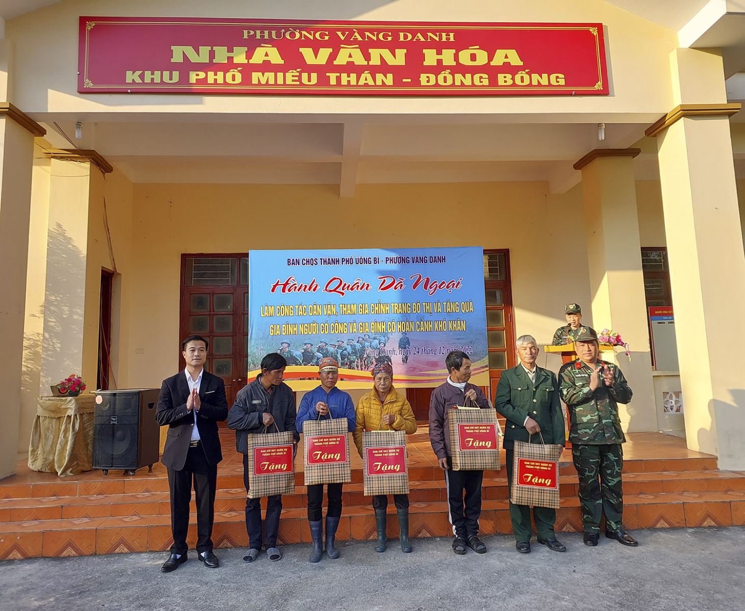 Sáng ngày 24/12, Ban CHQS thành phố thực hiện hành quân dã ngoại làm công tác dân vận và tặng quà cho đối tượng chính sách tại khu Miếu Thán - Đồng Bống, phường Vàng Danh.
