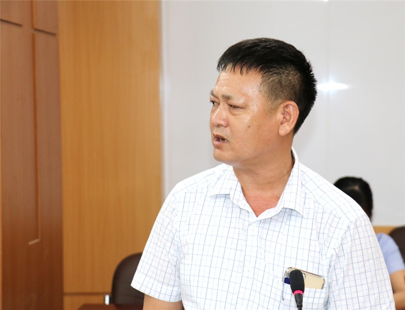 Chủ cơ sở giết mổ tập trung Vang Thanh Dương phát biểu tại cuộc làm việc.