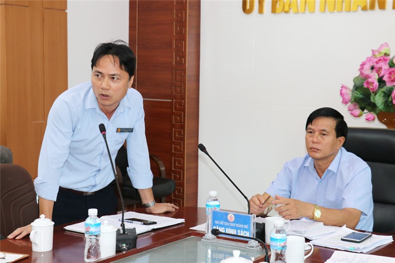 Đồng chí Nguyễn Văn Hưng, Trưởng phòng Kinh tế thành phố báo cáo tại hội nghị.