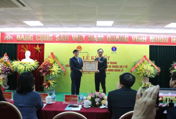 Bộ trưởng Bộ Y tế trao danh hiệu thầy thuốc nhân dân cho TS. BSCC Trần Viết Tiệp - Giám đốc Bệnh viện Việt Nam-Thụy Điển Uông Bí.