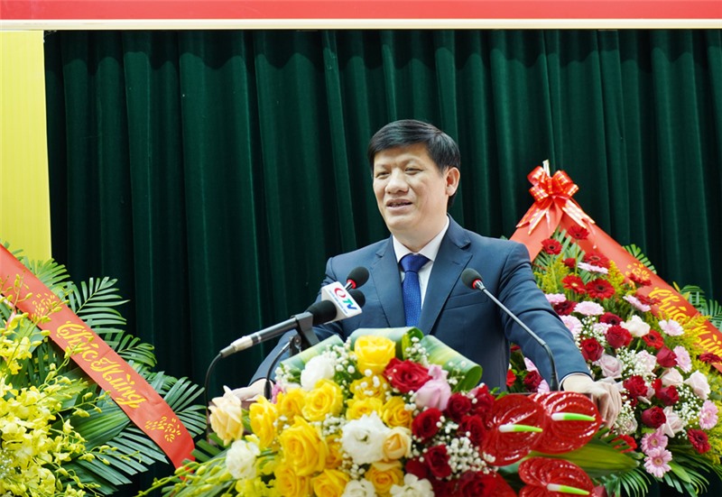 Đồng chí Nguyễn Thanh Long - Bí thư ban cán sự Đảng, Bộ trưởng Bộ Y tế phát biểu tại buổi lễ.