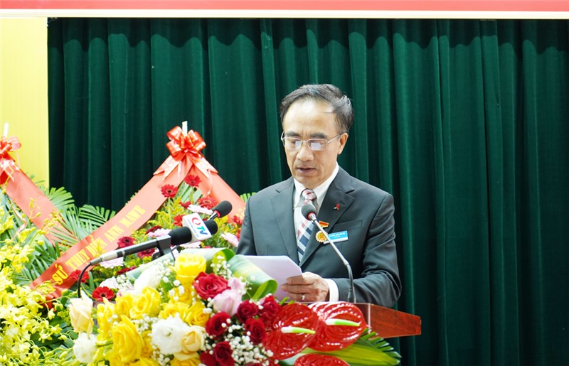 Đồng chí Trần Viết Tiệp - Giám đốc Bệnh viện Việt Nam - Thụy Điển Uông Bí phát biểu tại buổi lễ.