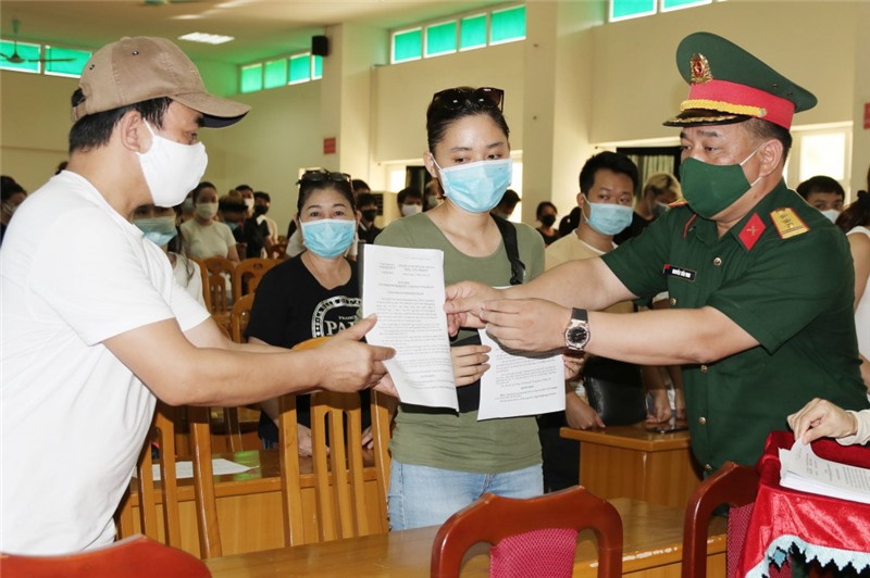 Các công dân được trao giấy chứng nhận hoàn thành thời gian cách ly tại Trung đoàn 244.