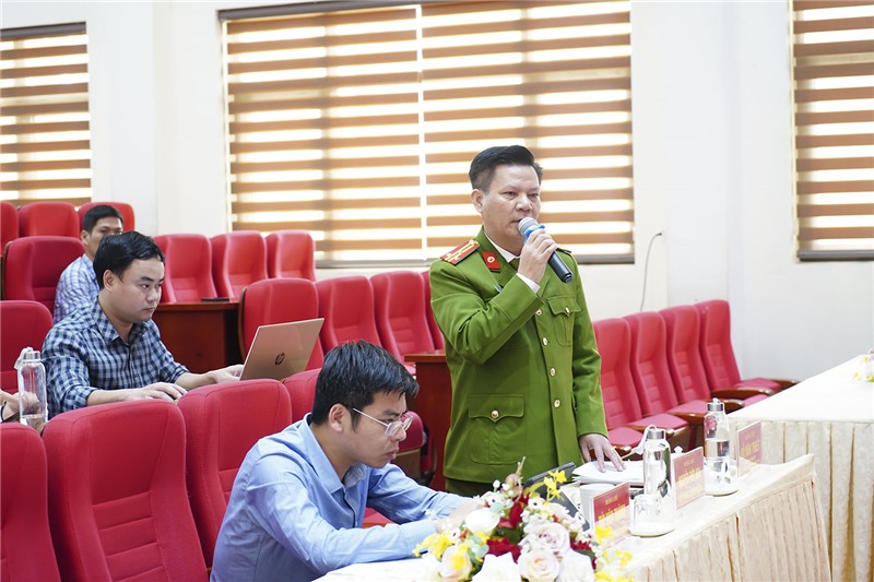Đồng chí thượng tá Đỗ Văn Thiết - Trưởng Công an thành phố phát biểu tại hội nghị.