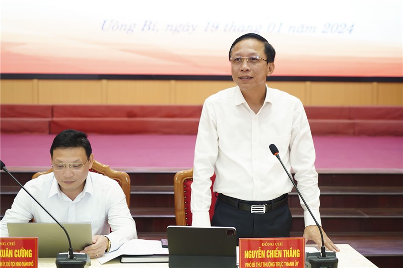 Đồng chí Nghiêm Xuân Cường; Uỷ viên BCH Đảng bộ Tỉnh, Bí thư Thành uỷ, Chủ tịch HĐND Thành phố; đồng chí Nguyễn Chiến Thắng, Phó Bí thư thường trực Thành uỷ; đồng chí Phạm Tuấn Đạt, Phó Bí thư Thành uỷ, Chủ tịch UBND thành phố đồng chủ trì hội nghị.