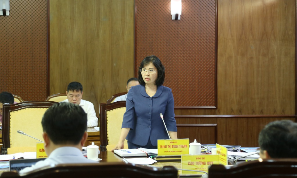 Đồng chí Trịnh Thị Minh Thanh, Phó Bí thư Thường trực Tỉnh ủy, phát biểu tại hội nghị.