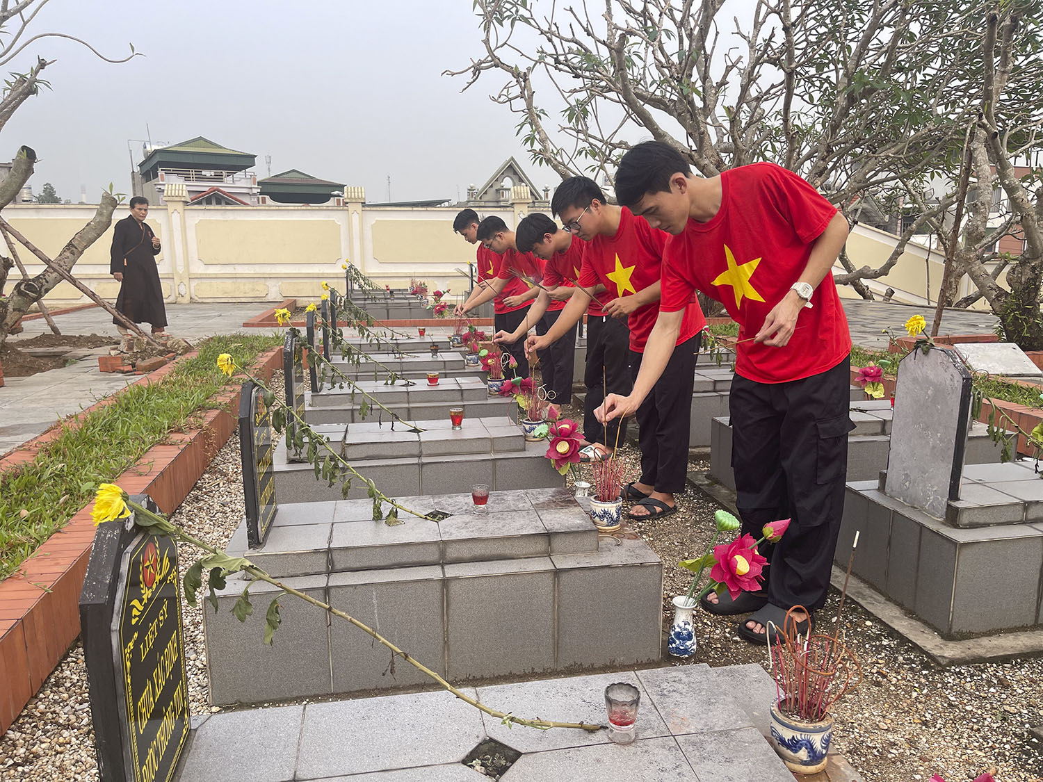 Đoàn đại biểu Ban Trị sự Giáo hội Phật giáo Việt Nam tỉnh Quảng Ninh thắp hương tưởng niệm tại phần mộ các anh hùng liệt sĩ.