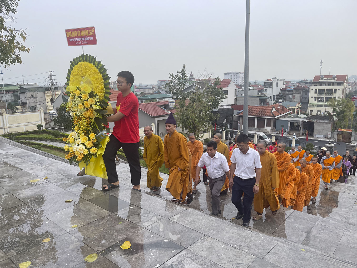 Chiều 29/4, đoàn đại biểu Ban Trị sự do Hòa thượng Thích Thanh Quyết, Phó Chủ tịch Hội đồng Trị sự Giáo hội Phật giáo Việt Nam, Viện trưởng Học viện Phật giáo Việt Nam tại Hà Nội, trụ trì chùa Yên Tử làm trưởng đoàn, cùng các chư tôn đức, tăng ni, phật tử đã đến dâng hương tưởng niệm các anh hùng liệt sĩ tại Nghĩa trang liệt sĩ thành phố Uông Bí.