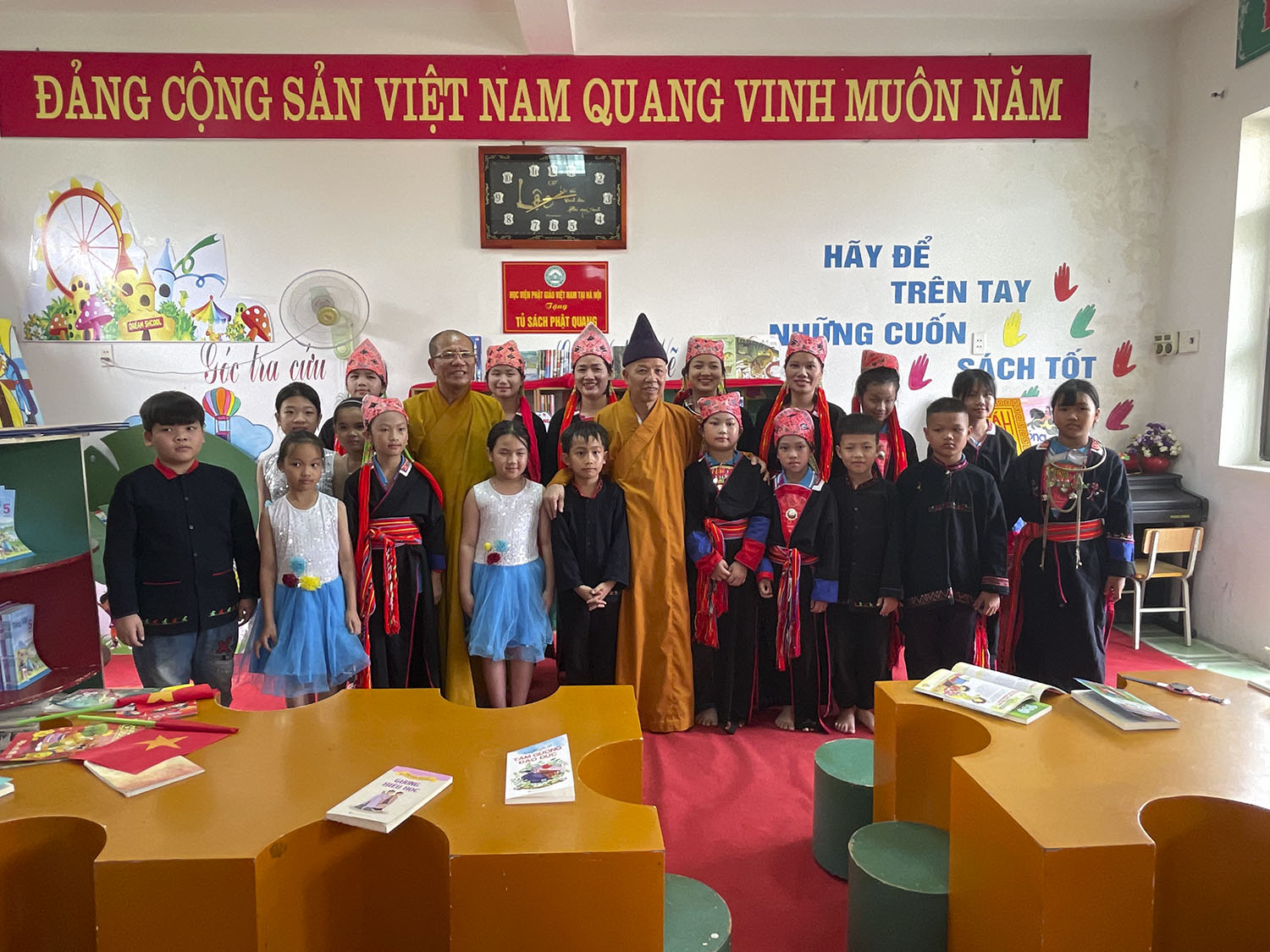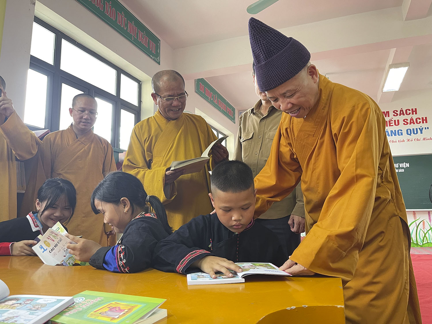 Cũng trong chiều cùng ngày, Ban Trị sự phối hợp với Học viện Phật giáo Việt Nam trao tặng Tủ sách Phật Quang cho Trường Tiểu học Kim Đồng, xã Thượng Yên Công. Tủ sách gồm hơn 150 đầu sách về kiến thức, kỹ năng sống, phù hợp với nhiều lứa tuổi. Đây là món quà mang giá trị tinh thần sâu sắc, góp phần bồi dưỡng tâm hồn, đạo đức và nhân cách cho thế hệ học sinh, lan tỏa ánh sáng tri thức trong nhà trường.